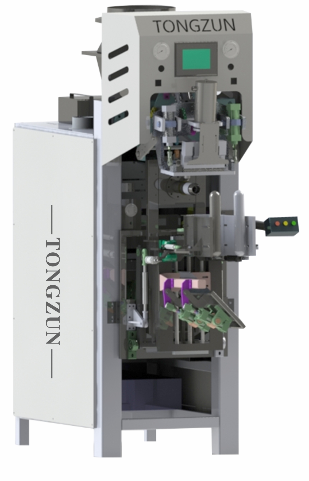 ◆自动实现包装袋的压紧、灌装、松开、停止灌装和掉袋等功能,性能稳定、操作简单(工人只有插袋动作)。
